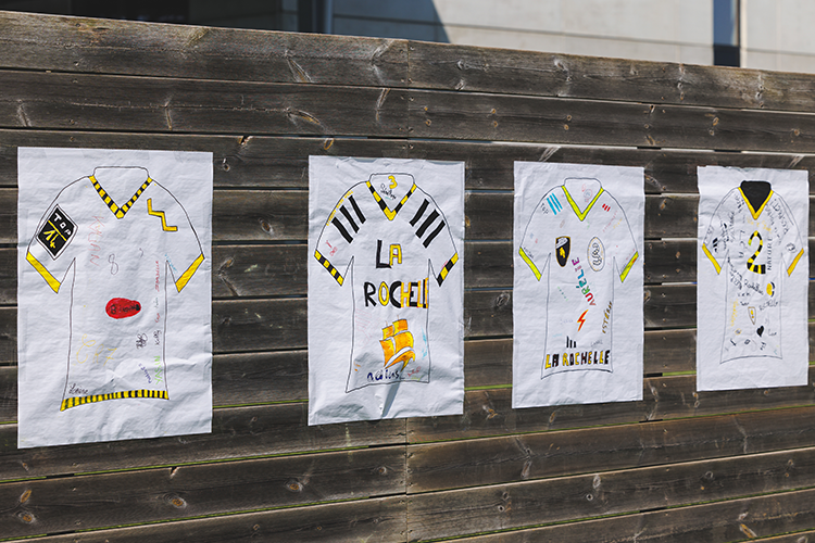 À l’occasion d’un événement organisé en lien avec le Stade Rochelais le 28 avril 2025, les enfants ont été invités à dessiner en petits groupes « les nouveaux maillots du Stade Rochelais ». Les productions des enfants seront exposées à la Maison de la Charente-Maritime à La Rochelle, ainsi que d'autres photos relatives à cette journée.