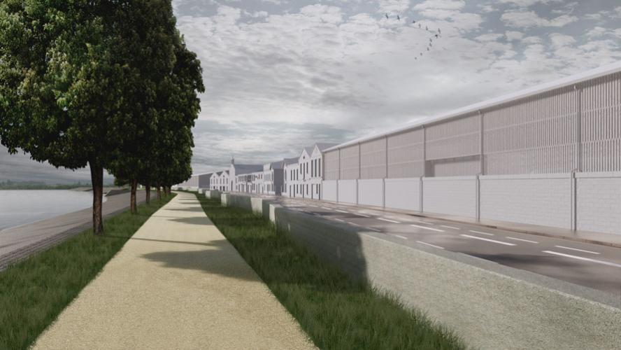 Fin des travaux : création d'une digue et aménagement de la promenade sur les quais dans le quartier Libération à Rochefort.