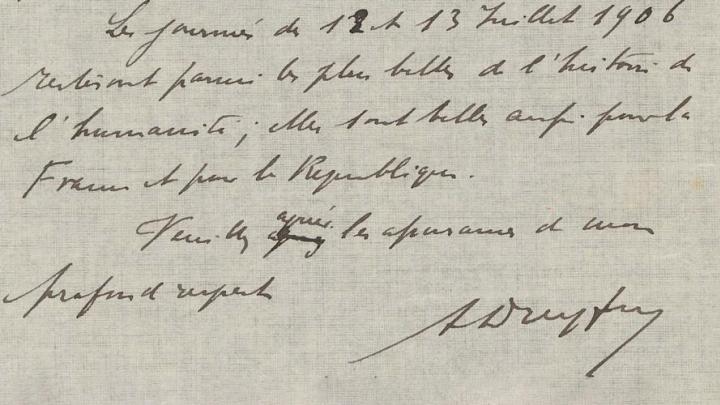 La lettre, adressée par le capitaine Dreyfus à Émile Combes, date du 15 juillet 1906, juste après la réhabilitation définitive du capitaine par la Cour de cassation, le 12 juillet 1906.