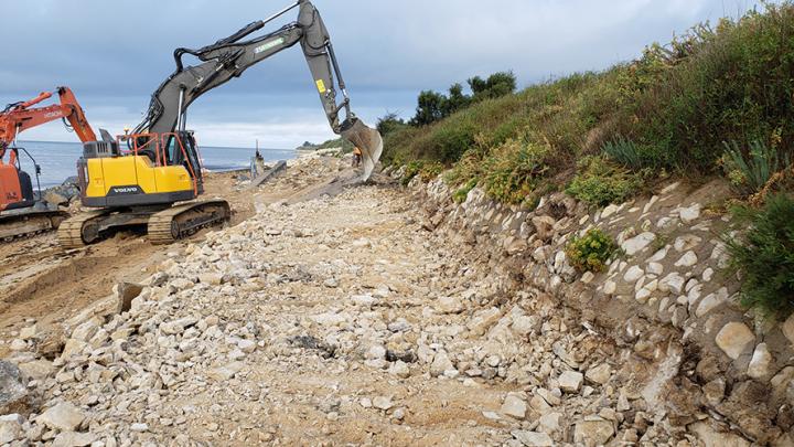 Alors qu'un chantier de contre-digue vient de s'achever à Esnandes, les travaux pour la digue de Montamer à Sainte-Marie se poursuivent jusqu'en janvier 2022.
